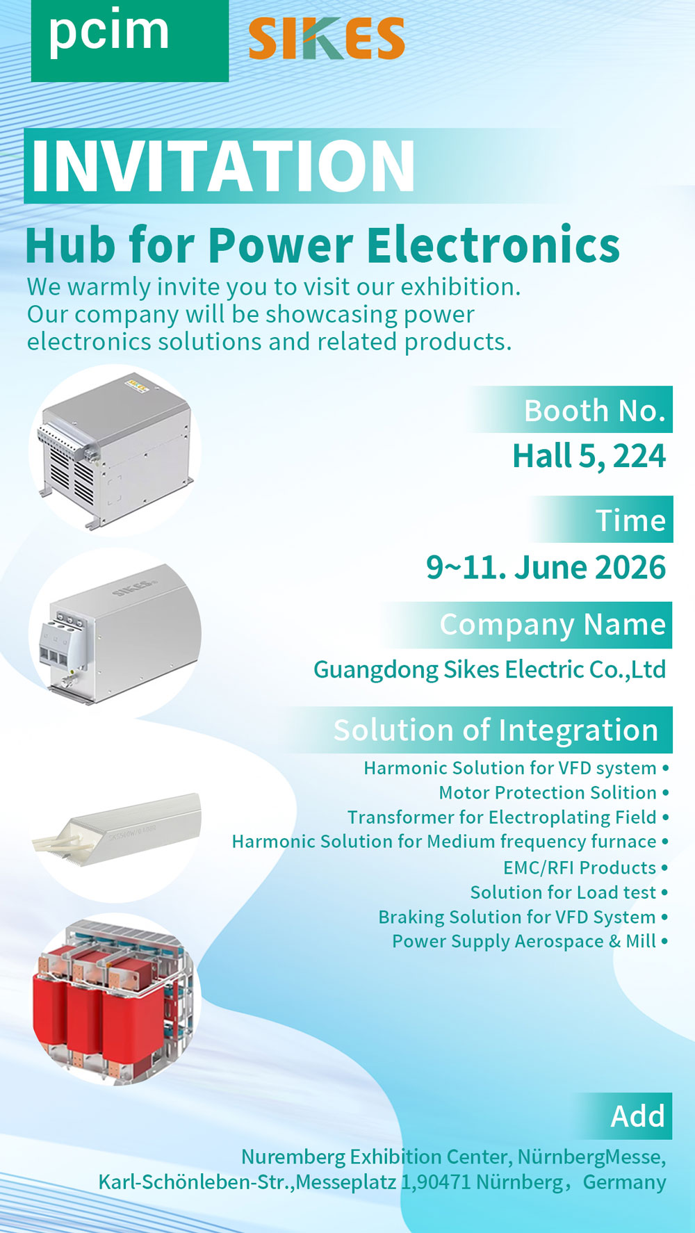 尊敬的客户,我们诚挚邀请您参观即将举行的PCIM展会(6月9日-11日,德国纽伦堡会展中心)。欢迎莅临我们的展位(展位号:224,5号厅),我们将展示我们全系列产品和行业领域方案,期待与您面对面交流行业趋势与合作机会。