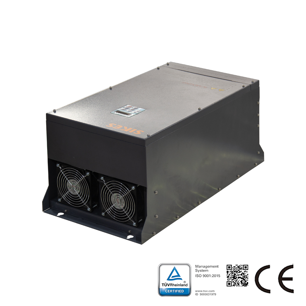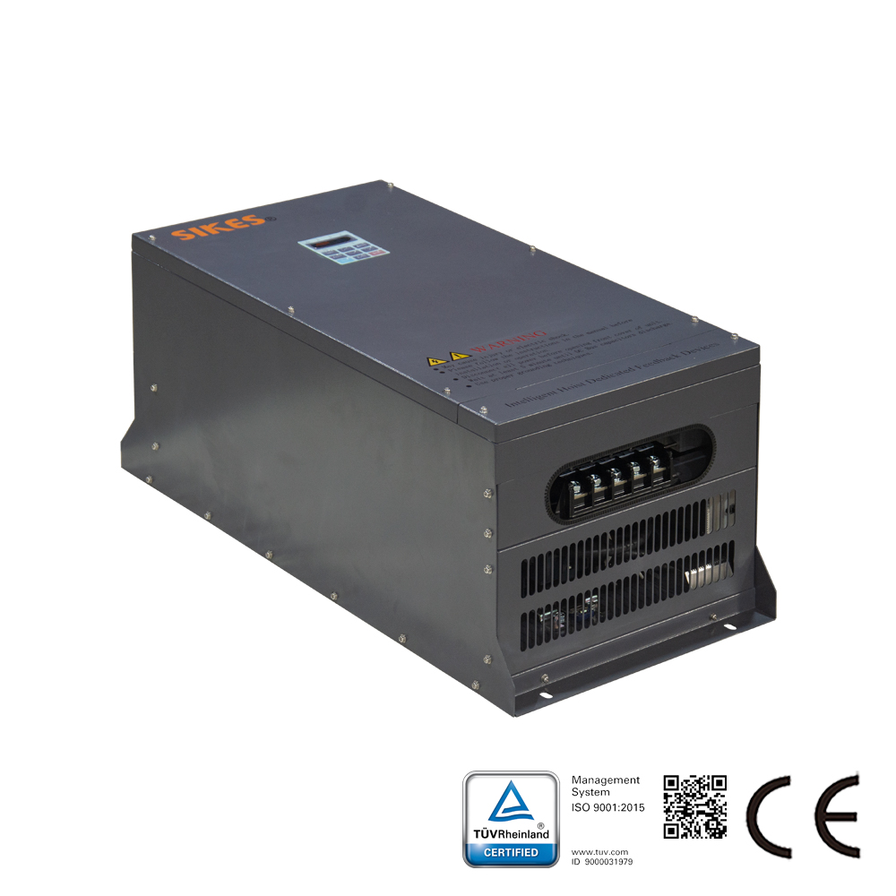 本系列采用响应迅速、高精度过程控制的微处理器芯片,使变频器运行于四象限,实现连续反馈,再生制动频率低于40%。电能再生效率高达97%。采用SPWM调制技术,显著降低电流特征峰值,形成完美的正弦波电流,输入端电流总谐波失真低于5%,功率因数高达99%。具备防止电网倒流、过热、过流、缺相、欠压及短路等保护功能。